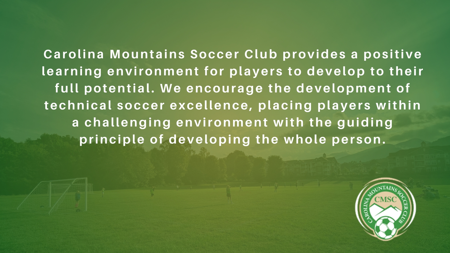 This club was founded in 1980 as Smoky Mountain Youth Soccer Association (SMYSA). SMYSA officially became Smoky Mountain Soccer Club (SMSC) in the Fall season of 2003. SMSC has been serving the soccer community of Western North Carolina for over twenty years. In 2007, we changed the name to Carolina Mountains Soccer Club (CMSC) to reflect the growth of the club as it better serves the area in which it was founded. The club is affiliated at the state level with the North Carolina Youth Soccer Association.